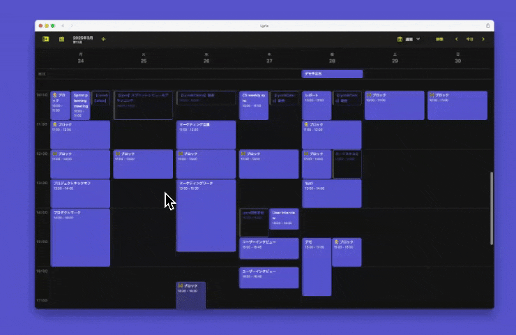 今までは、Lynx上で予定を追加する際は、予定を入れたい時間をクリックし、そこから時間を指定する必要がありました。