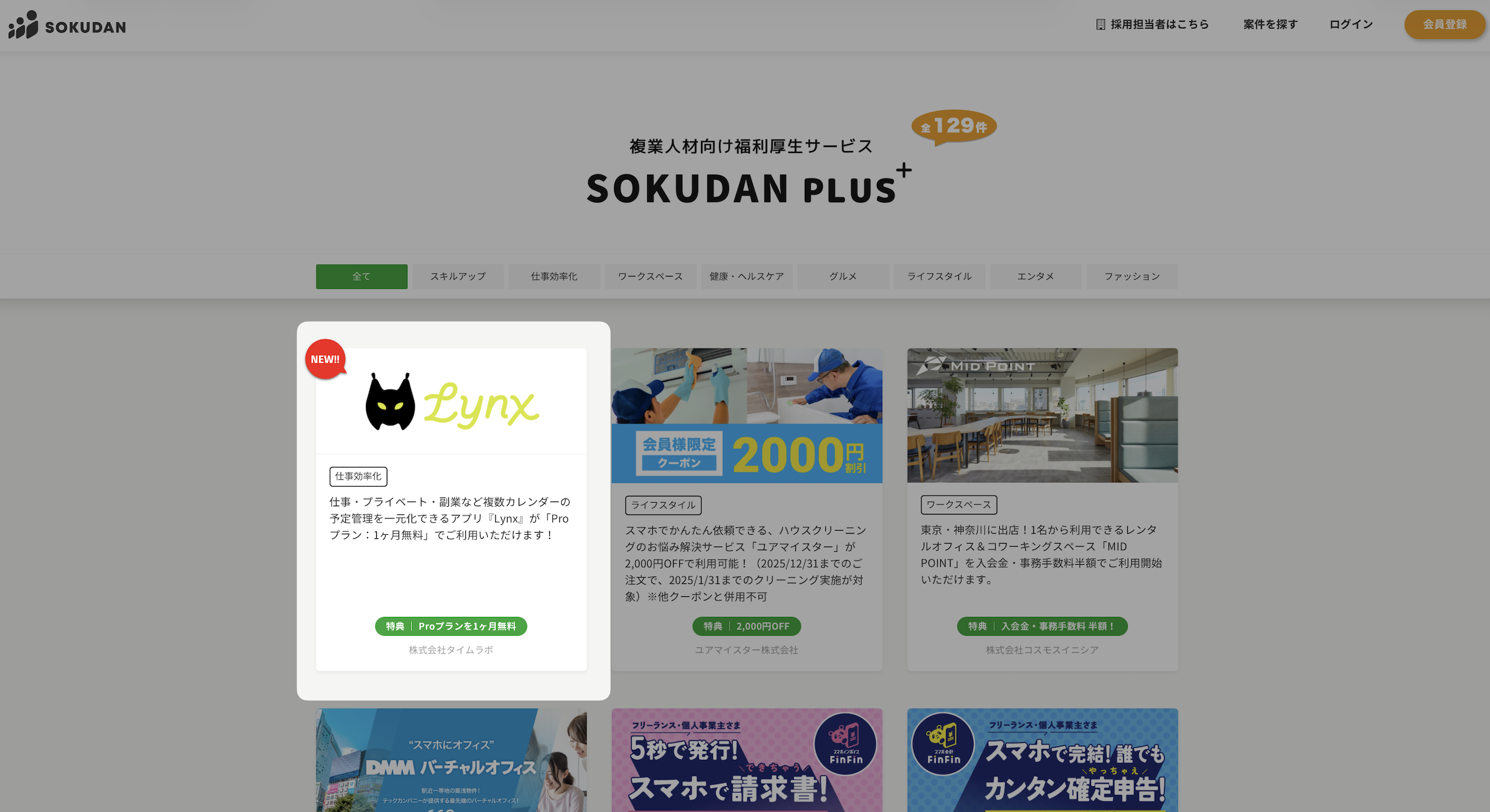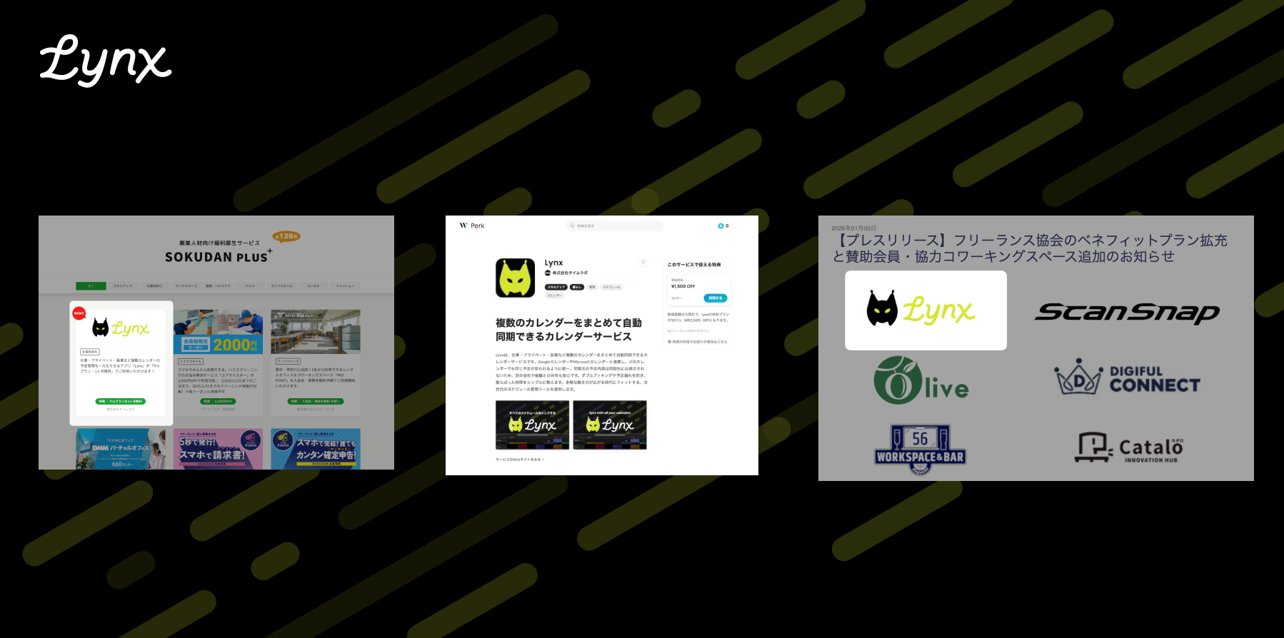 そんな中で、Lynxがフリーランス・複業の方向けの福利厚生/特典として、複数のサービスに追加されました。